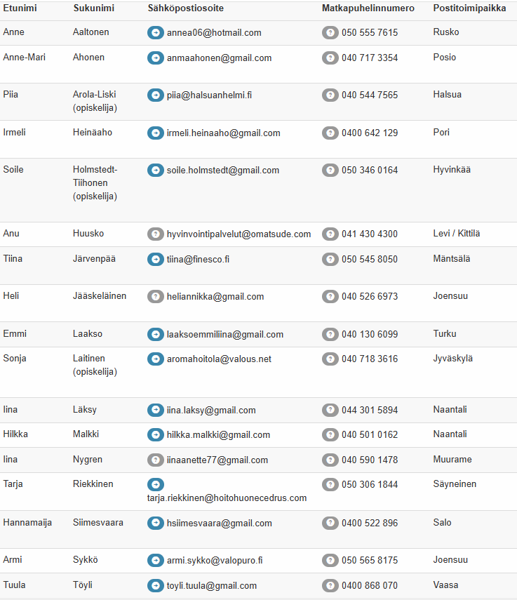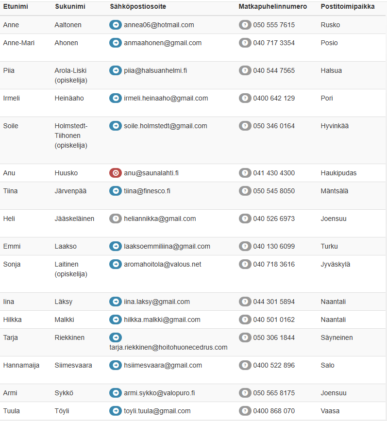 Alla olevasta listasta löydät koulutettuja aromaterapeutteja: