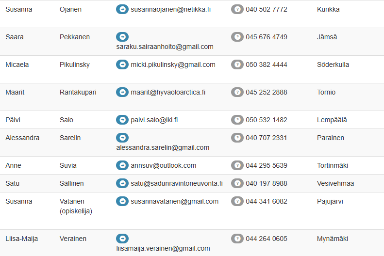 Alla olevasta listasta löydät koulutettuja fytoterapeutteja: