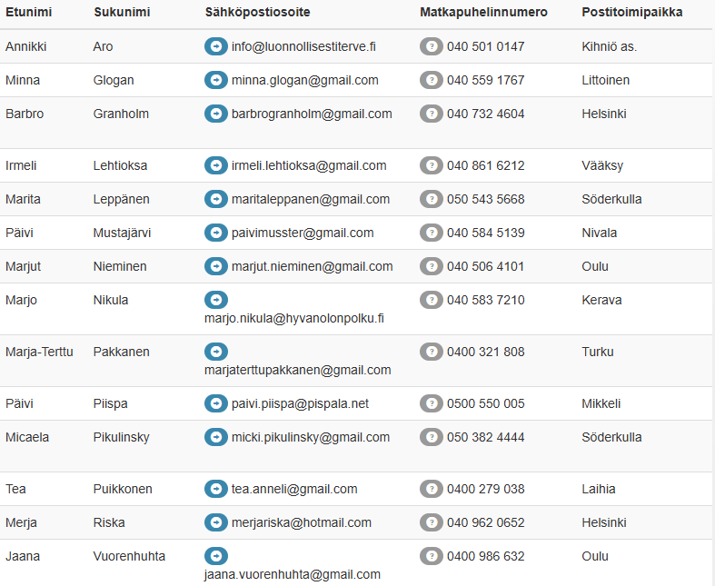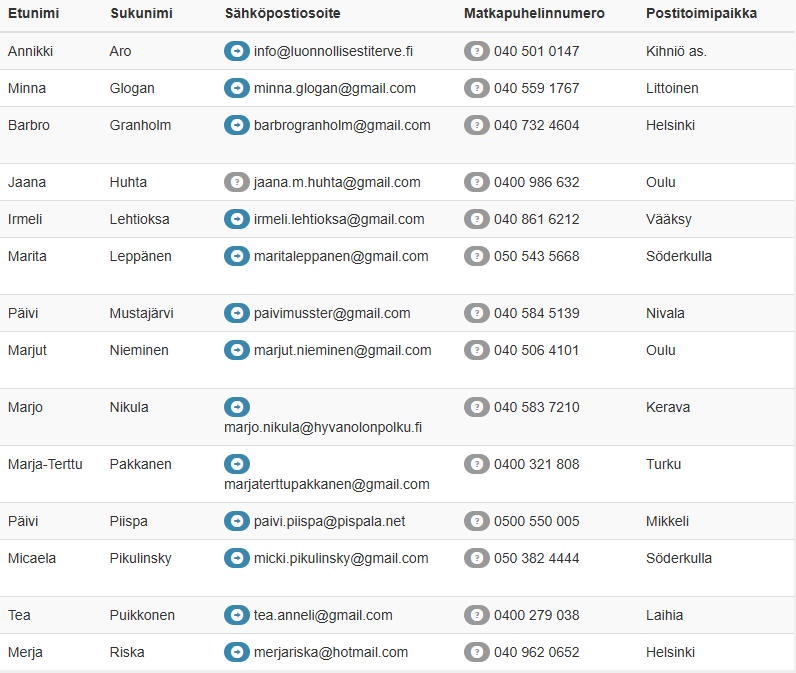 Alla olevasta listasta löydät koulutettuja homeopaatteja: