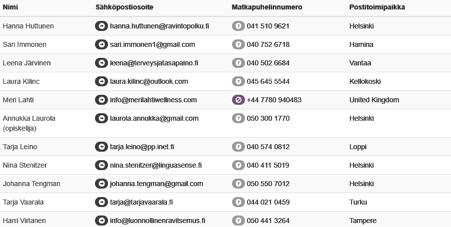 Alla olevasta listasta löydät koulutettuja ravintoterapeutteja: