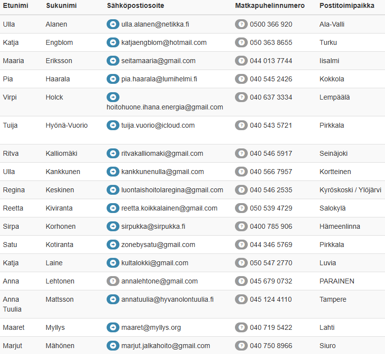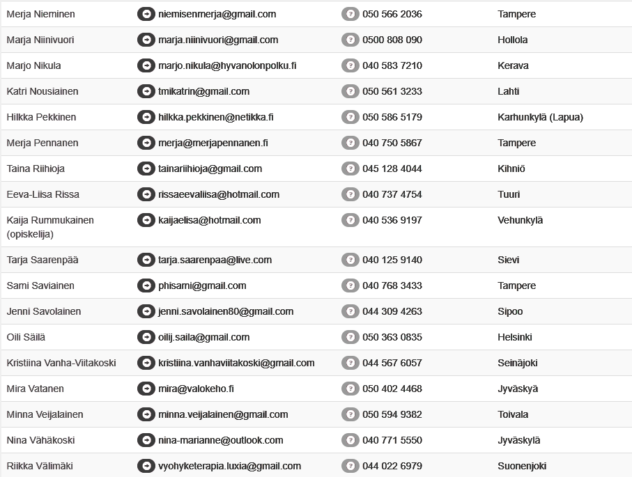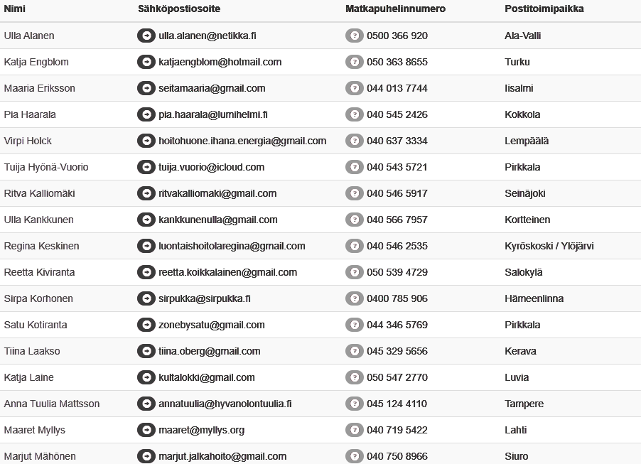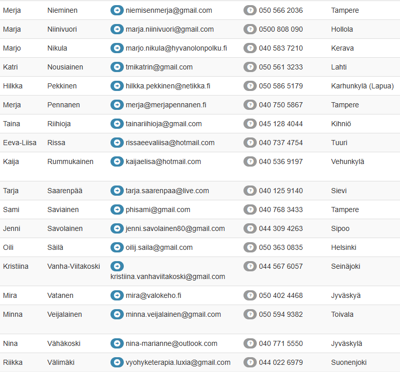 Alla olevasta listasta löydät koulutettuja vyöhyketerapeutteja: